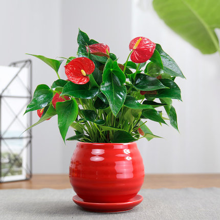 紅掌喜濕潤偏潮濕的土壤和較高的空氣濕度。春、夏、秋生長旺季保持盆土的潮濕,同時經(jīng)常向其葉面和四周噴霧,以增加空氣濕度。秋末氣溫下降至18℃左右時逐步減少供水,使盆土濕潤。冬季是開花的季節(jié),不能缺水,但因冬季溫度較低,澆水不宜多,保持盆土濕潤即可,同時因室內(nèi)空氣濕度較低,應(yīng)注意向其葉面和四周噴霧數(shù)次。如布置于空調(diào)房間,應(yīng)增加噴霧次數(shù)。開花時注意不應(yīng)將水噴在花上。